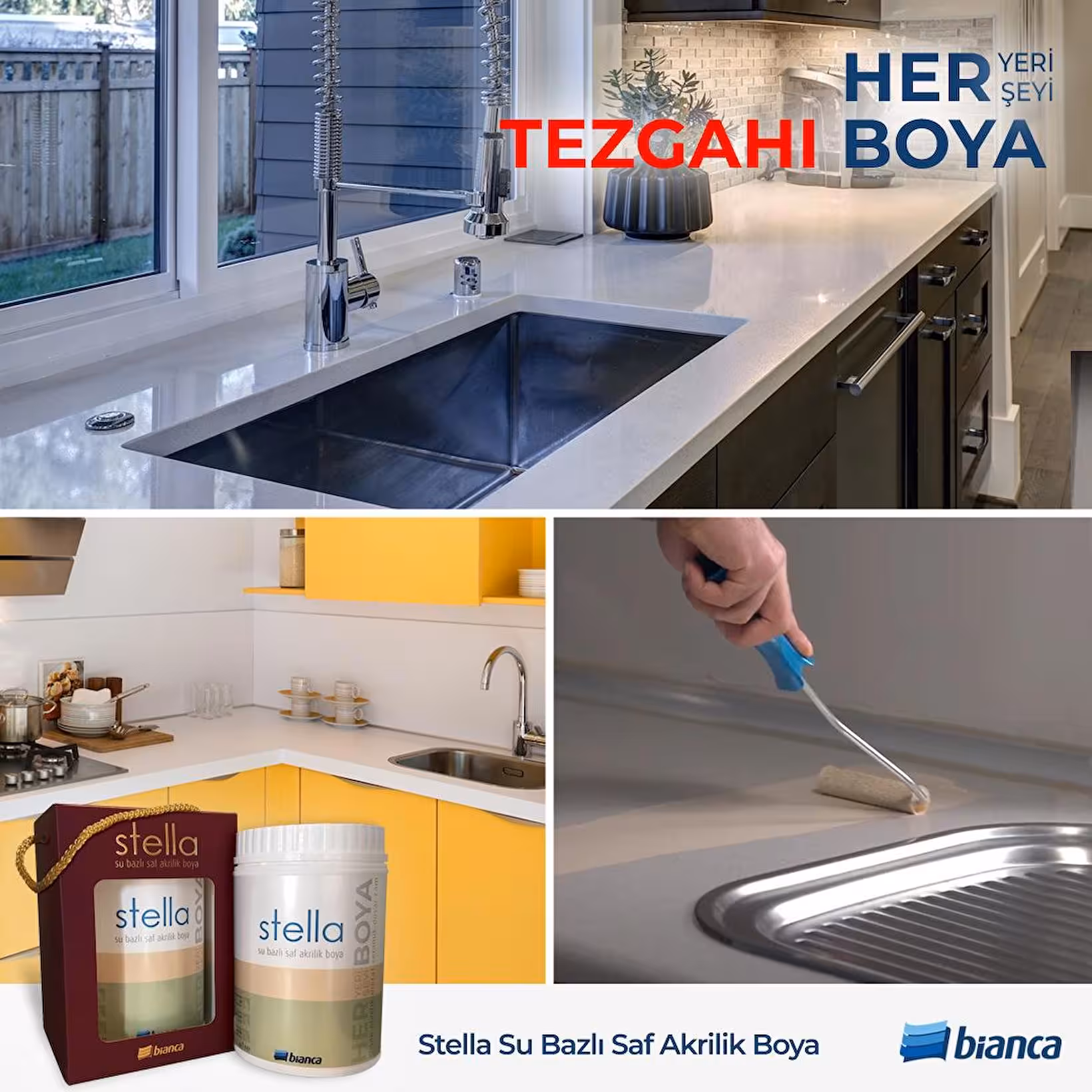 Uygulama yapılacak yüzeyin mutlaka temiz olması gereklidir. Yüzey, tüm toz, kir, yağ ve silikon gibi boyanın yüzeye tutunmasını azaltacak tüm etmenlerden arındırılmış olmalı, gerekli durumlarda zımpara yapılmalıdır. Uygulama öncesi herhangi bir astar kullanımı gerektirmez. Metal yüzeylerde korozyon oluşumunu engellemek için yüzeyin Bianca Antipas ile astarlanması önerilmektedir. Bianca Stella ambalajı açıldıktan sonra homojen kıvam elde edilinceye kadar karıştırılır. Gerekli ön hazırlığı yapılmış yüzeye ürün inceltilmeden 2 kat halinde, ipek fırça, kadife rulo veya püskürtme ile uygulanır. Katlar arasında min. 2 saat beklenmelidir. Uygulama sırasında, uygulanılan yüzey ve ortam sıcaklığının +5°C ile +30°C arasında olmasına özen gösterilmelidir.