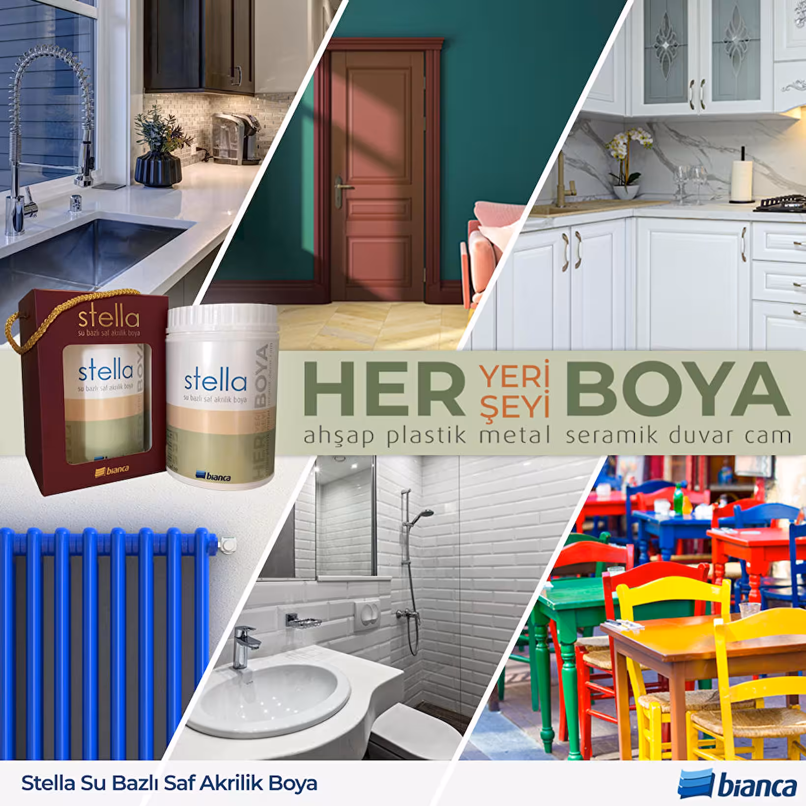 Uygulama yapılacak yüzeyin mutlaka temiz olması gereklidir. Yüzey, tüm toz, kir, yağ ve silikon gibi boyanın yüzeye tutunmasını azaltacak tüm etmenlerden arındırılmış olmalı, gerekli durumlarda zımpara yapılmalıdır. Uygulama öncesi herhangi bir astar kullanımı gerektirmez. Metal yüzeylerde korozyon oluşumunu engellemek için yüzeyin Bianca Antipas ile astarlanması önerilmektedir. Bianca Stella ambalajı açıldıktan sonra homojen kıvam elde edilinceye kadar karıştırılır. Gerekli ön hazırlığı yapılmış yüzeye ürün inceltilmeden 2 kat halinde, ipek fırça, kadife rulo veya püskürtme ile uygulanır. Katlar arasında min. 2 saat beklenmelidir. Uygulama sırasında, uygulanılan yüzey ve ortam sıcaklığının +5°C ile +30°C arasında olmasına özen gösterilmelidir.